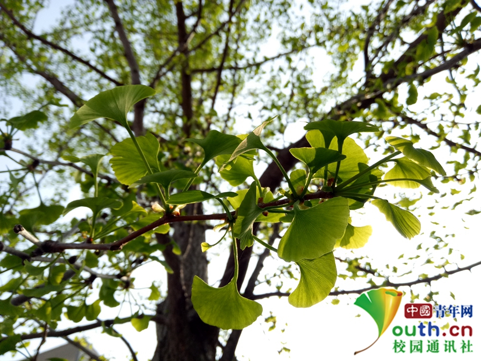 阳春三月,百花争艳,银杏也不甘示弱。一转眼,银杏树已披上一层绿纱,长得枝繁叶茂。它小小的叶子就像是一柄柄小扇子,翠绿可爱。一缕阳光透过来,照的绿色都变得透明起来,看上去充满生机,很是迷人。中国青年网通讯员 黄诗翰 摄