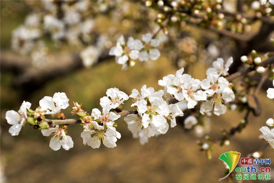 一枝桠上缀满纵情绽放、交错辉映的花儿,如满树花丛间的素蝶,停留在枝条上热烈讨论各树繁花,等待春风吹起便振翅飞翔,飞向任人采撷的花蕊。中国青年网通讯员 徐孟耀 摄