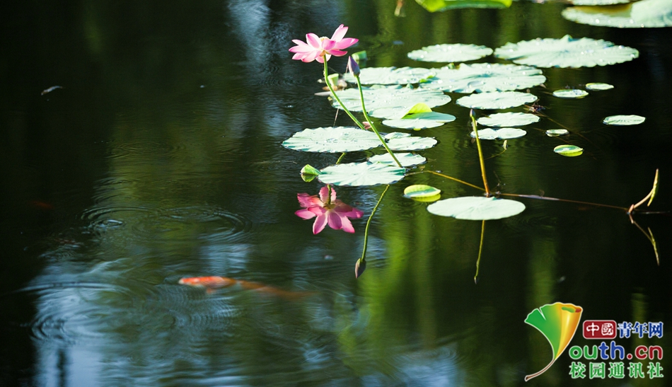 湖水绿如蓝,点缀一芙蓉,谁见鱼儿来,嬉戏小池中。中国青年网通讯员 李广林 提供