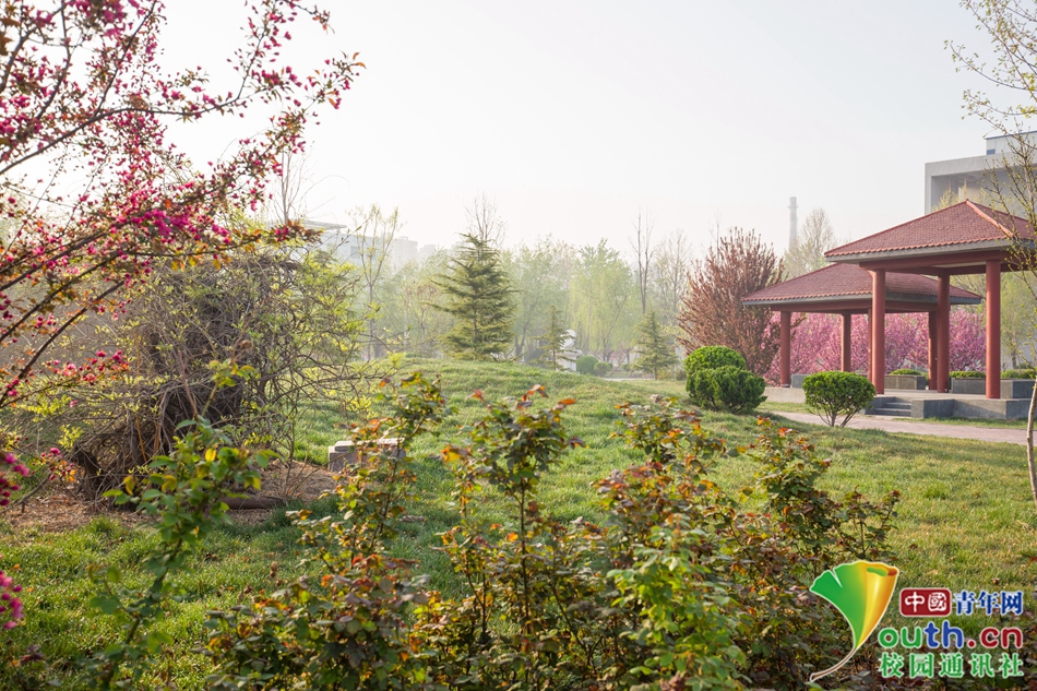 寒秋已下,叶枫泛黄,仍有青在侧,亭亭矗立。中国青年网通讯员 李广林 提供