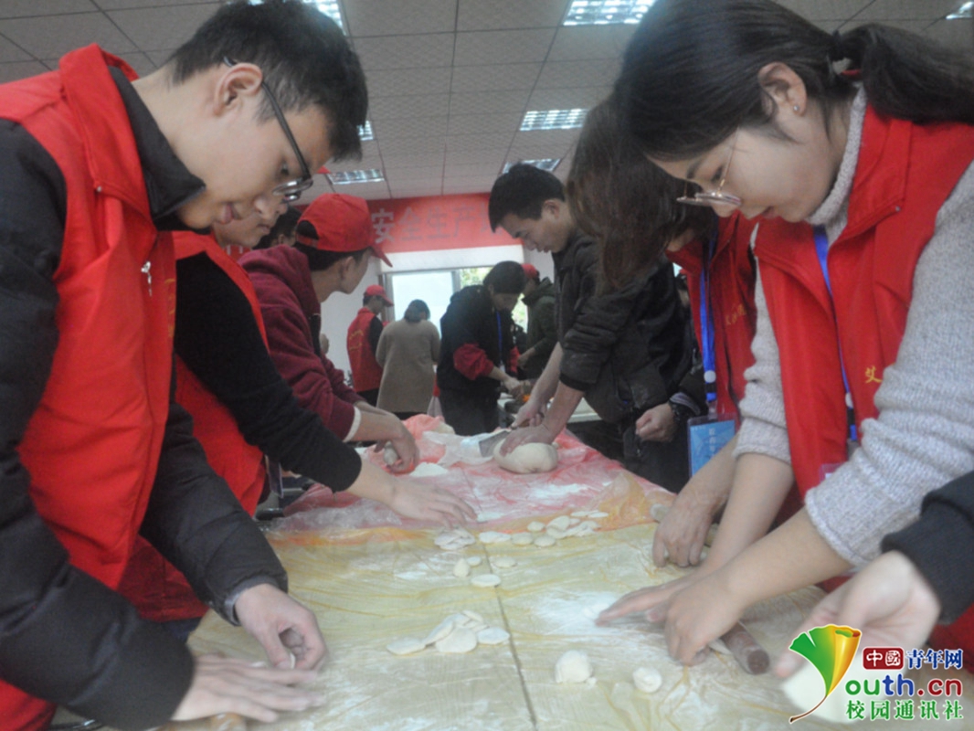 本次活动主要形式就是以饺子为主题,让老人们体会到冬日里的温暖。图为志愿者们和老人们在一起擀面皮。通讯员 章超凡 摄