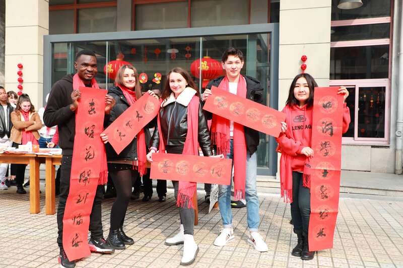 此外,学校还专门组织学生开展挂灯笼、剪窗花、写对联等,体验中国传统的年俗文化,感受浓浓的“中国年”。