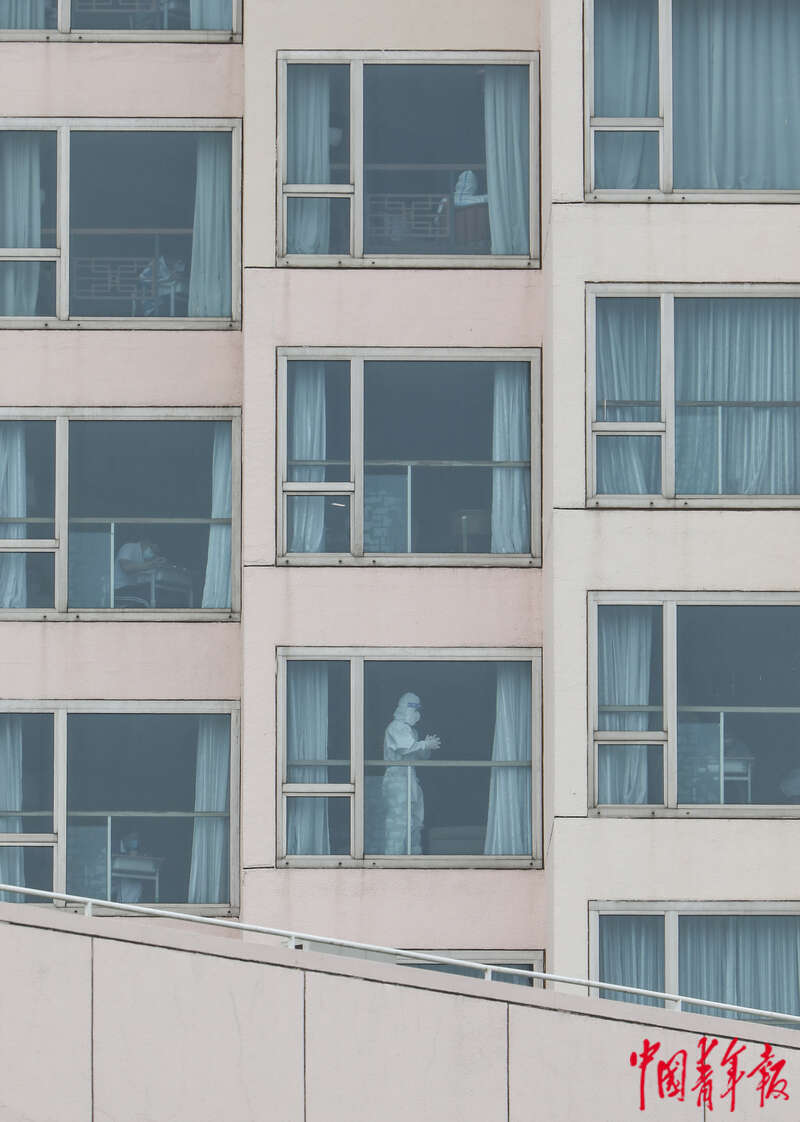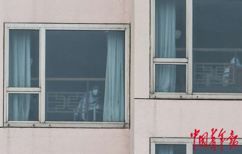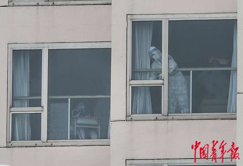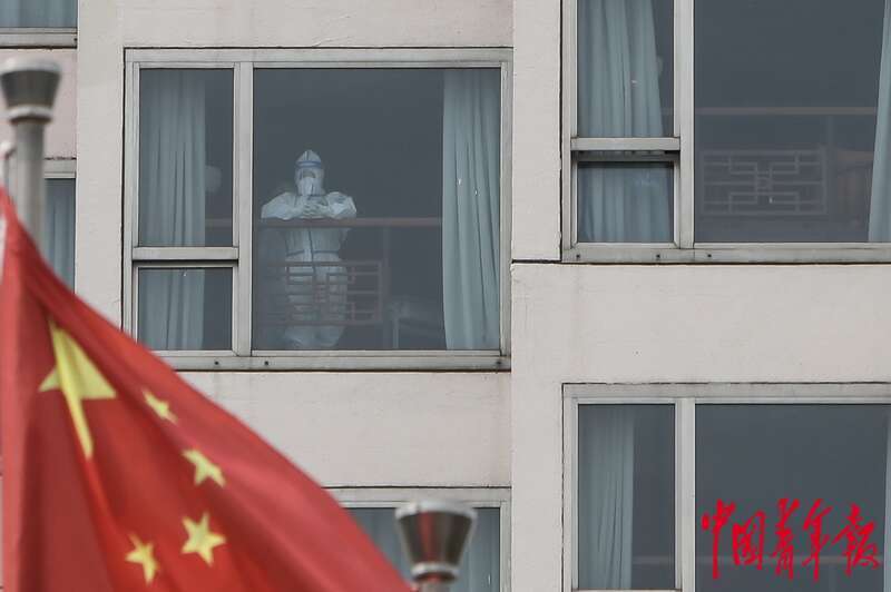 6月8日,北京市海淀区西苑饭店封控管控考点,一名监考老师站在窗边。中青报·中青网记者 孔斯琪/摄