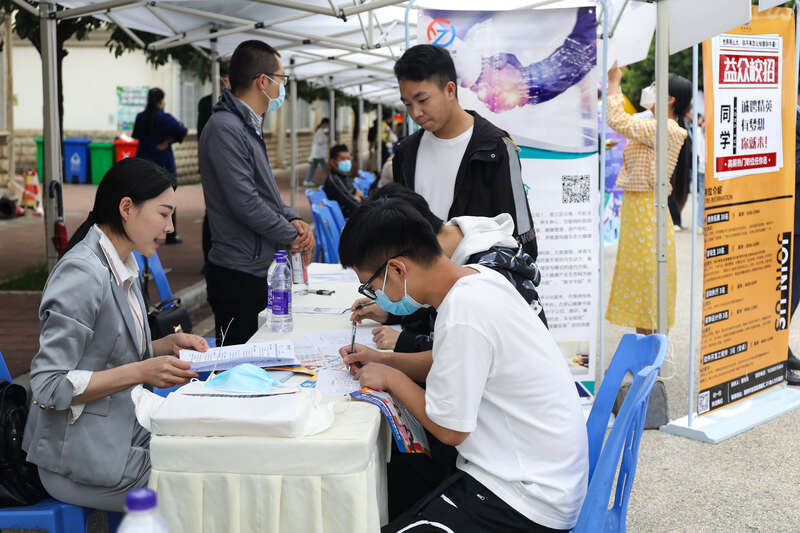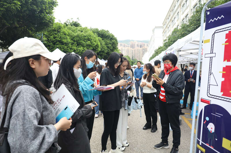 中国青年报客户端讯(中青报·中青网记者张文凌)6月13日,由云南省人力资源和社会保障厅主办的“百日千万网络招聘”校园专场招聘会在昆明城市学院举行。近170家单位将为2022届高校毕业生提供4000余个岗位,参会单位涉及教育、农业、金融、互联网、物流、法律、医疗、计算机、零售、电子、建筑等多个行业。
