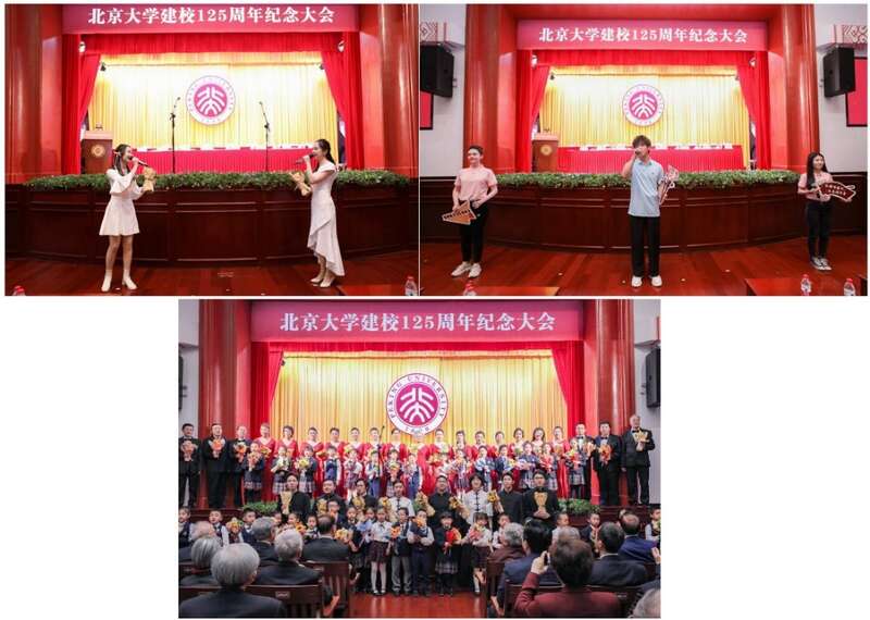 大会开始前,北京大学及附属小学、附属幼儿园的师生们合唱《我和我的祖国》,演唱组歌《一路生花》《今夜无人入睡》《如愿》,以及歌曲“We are the World”,歌唱祖国、歌唱青春、歌唱北大,营造出浓厚的喜庆氛围。