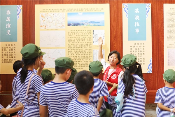 大家在馆内扮演着“淇澳风云讲述人”的角色,向游客介绍苏兆征的故事,将淇澳的历史文化传播给更多人,邀请游客进行“党的二十大精神知识问答挑战”,引导居民全面深入学习宣传贯彻党的二十大精神。今年14岁的嘉嘉说道:“苏兆征故居作为珠海市淇澳岛中共党史教育基地、珠海市红领巾教育基地,传承红色基因是我们淇澳少年的义务、责任,更是使命。”