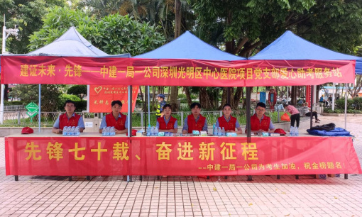 6月7日,2023年高考拉开帷幕,中建一局一公司深圳光明区中心医院项目党支部联动光明社区党群服务中心,由党员干部、团员青年共9人组建志愿者队伍,给考生及家长提供全方位的便利服务。