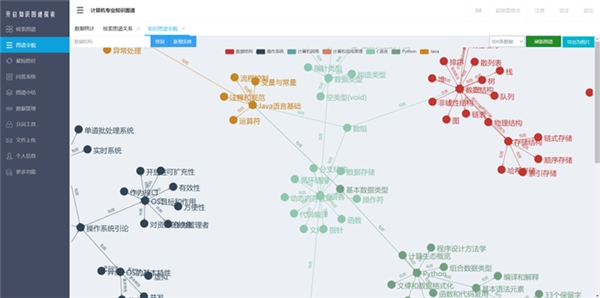 依托该项目,团队成员马江涛副教授开发和完善了计算机专业知识图谱系统,涵盖数据结构、操作系统、计算机网络、计算机组成原理、C 语言、Python 和 Java等与计算机专业相关的课程。通过知识图谱把这些课程的知识点构成一个个节点,通过知识点之间的联系连接这些节点,构成了一张巨大的知识图谱展现在前端页面。知识图谱能更加直观地展示知识之间关系,对特定节点的前驱进行查询并展示,替代传统查找方式,对需学习的知识进行快速获取,更加高效省时。