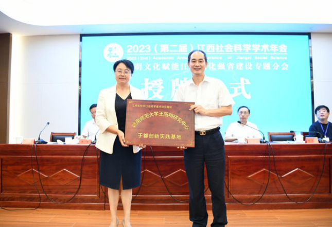 赣南师范大学党委副书记胡龙华为王阳明研究中心于都创新实践基地授牌。