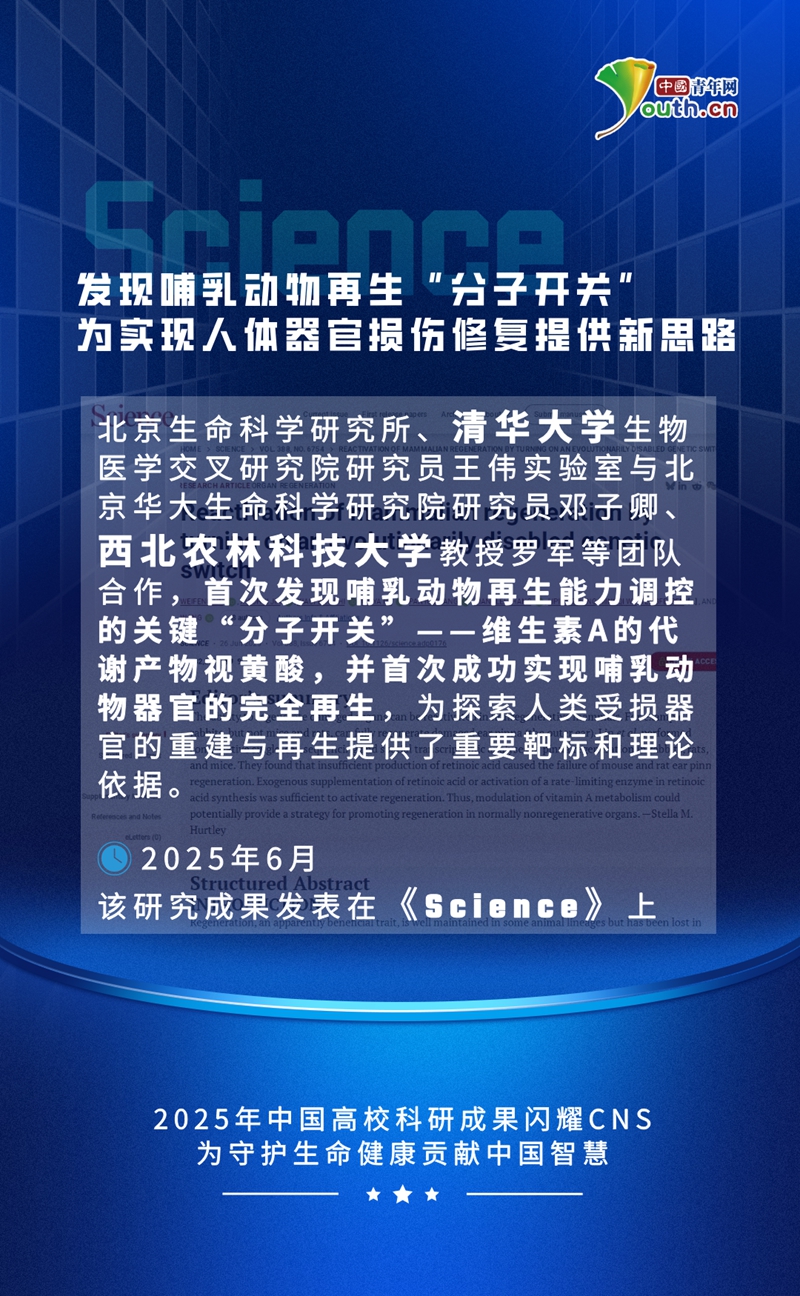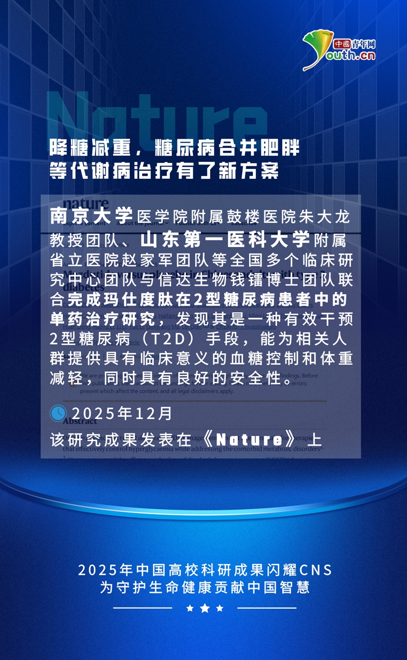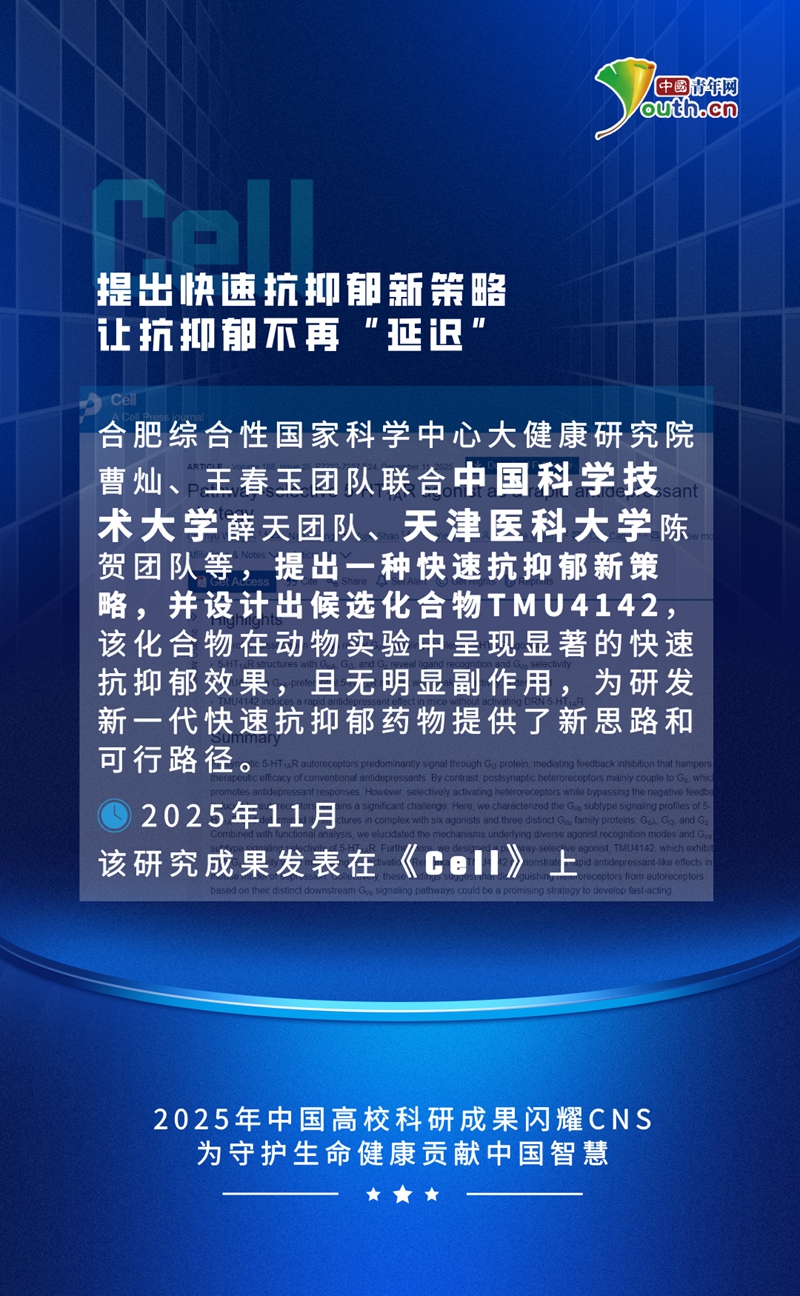 中国青年网北京12月30日电(记者 蒋宇骏 王龙龙)2025年,中国高校科研力量在国际学术舞台持续绽放光彩,多所高校科学家的研究成果登上《Cell》《Nature》《Science》三大世界顶级期刊(注:三大顶级刊物合称“CNS”)。其中,生命健康领域成为科研产出的核心焦点与亮眼板块,一系列研究围绕肿瘤、抗抑郁、阿尔茨海默病、糖尿病等医学命题展开,以扎实的原创性成果为守护生命健康、破解全球医学难题注入强劲的中国智慧与科研力量。下面,让我们一起回顾部分科研成果。