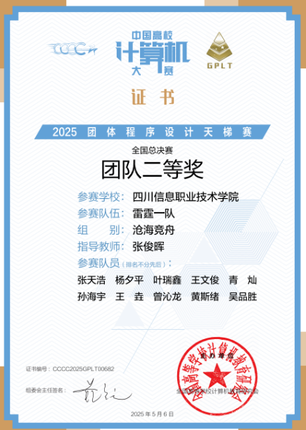 近日,四川信息职业技术学院学生连续在两项全国性赛事中斩获多项荣誉。其中,在第16届“蓝桥杯”全国软件和信息技术专业人才大赛省赛中,斩获一等奖17个、二等奖8个、三等奖8个;在第十届“中国高校计算机大赛——团体程序设计天梯赛”中,斩获全国总决赛团队二等奖、三等奖各1项。
