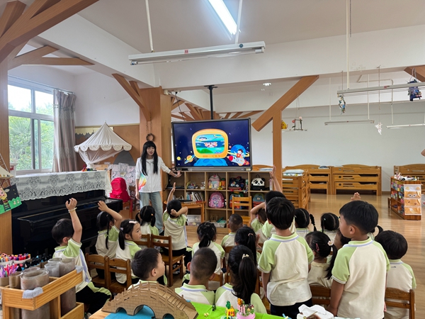 在“我心中的火箭”绘画环节,孩子们用斑斓色彩描绘着对浩瀚宇宙的想象。汤辰朱昳小朋友为火箭涂上鲜艳的红色,他说:“这是国旗的颜色!将来我也要成为科学家,保护我们的国家!”这一枚枚跃然纸上的火箭,不仅承载着孩子们对未知世界的好奇与向往,更寄托了他们立志为强国建设贡献力量的美好愿景。一幅幅充满童真与梦想的图画,如同一颗颗希望的种子,在幼小的心灵中生根发芽,激励着他们勇敢追梦,奔向未来星河。(沈铭灵)