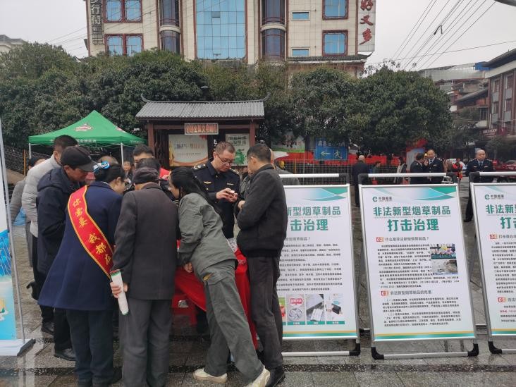 周末的街道热闹非凡,烟草专卖局充分发挥自身优势,组织一支训练有素的普法志愿者队伍,在社区广场、公园等人流量大的地方,搭起宣传台,摆上图文并茂的展板,吸引了众多居民驻足。