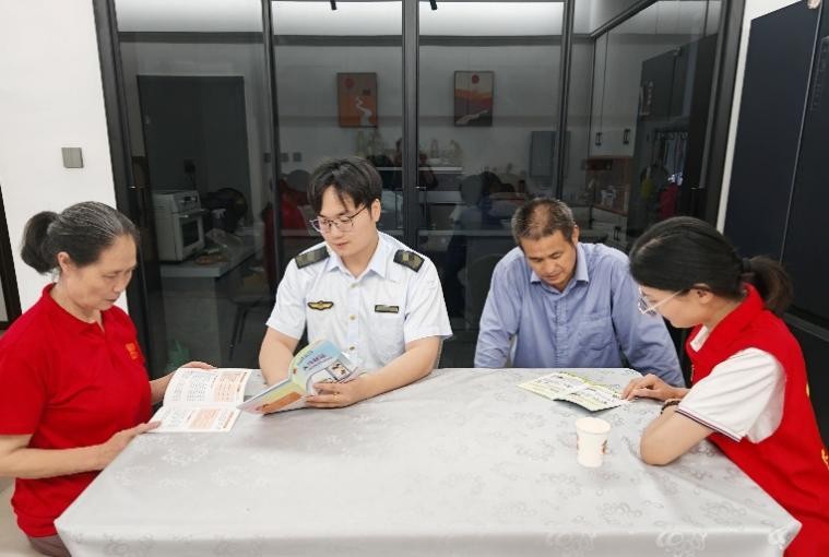 “大姐,现在网络购物方便,但也藏着不少陷阱,您可一定要注意保护个人隐私,别轻易点击不明链接,要是遇到消费纠纷,就拨打 12315 投诉电话,维护咱自己的权益!”普法员还围绕民法典中关于消费纠纷、物业服务等与居民生活紧密相关的法律条款进行解读。女主人感动地说:“你们考虑得太周到了,这些知识对我们家庭来说太宝贵了!咱们全家老小一起学,以后我们都能当半个‘法律监督员’,遇到消费纠纷、物业问题,也能拿起法律武器保护自己!”