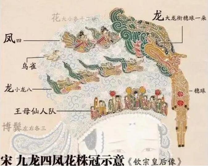 因为刘娥摄政,北宋中期出现了“九龙花钗冠”,在花树冠上增添龙、凤。