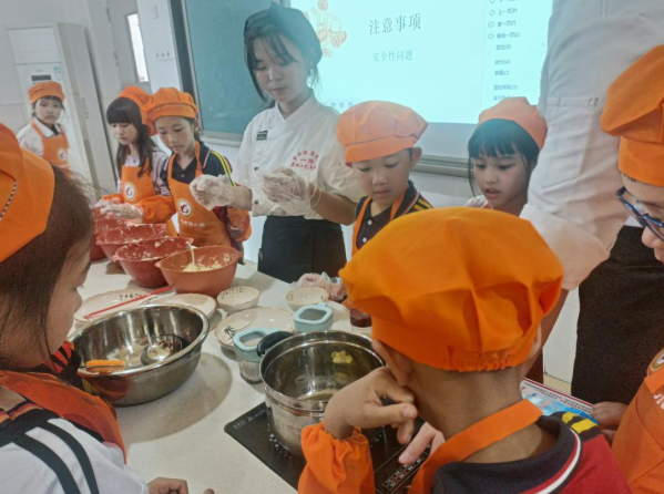广东环境保护工程职业学院走进乡村小学开设烹饪劳动教育课堂。