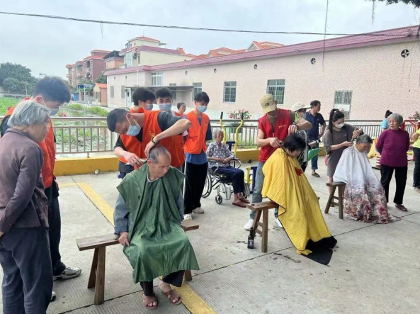 广东环境保护工程职业学院青年学子为社区老人义剪。