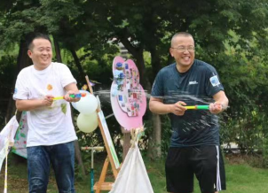 上午九点,一组组靓丽风采的亲子组合依次进行创意签到,接着孩子们拿着鲜花,轻敲小锤,将花瓣绽放的美丽瞬间拓印在纯白的T恤上,感悟父爱如“衫”。随后父子联手下池塘寻宝,摸鱼挖河蚌,体验亲子搭配互动的乐趣。?“寻宝”结束后,大家坐在一起享受着清甜的瓜果和甘洌的茶汤,懂事的孩子们将茶水端给父亲,对平日里辛勤工作的父亲说一句“爸爸,请喝茶”,在艳阳高照的莲花池旁,一家人品茶闲聊,其乐融融。短暂的休息后,活动进入了最后但却是最充满激情的环节,大家跃跃欲试、摩拳擦掌,这夏日派对的水枪大战一触即发,在这一刻,父亲和孩子共享着他们的快乐,强烈感受那专属于彼此的心灵沟通。活动结束后每组家庭都收到了独一无二的全家福炫父相框,父亲节的仪式感拉满!