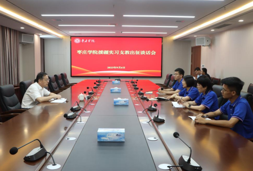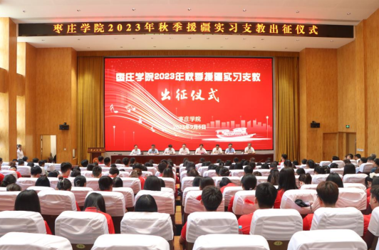 9月6日下午,枣庄学院在薛城校区崇德楼报告厅举行2023年秋季援疆实习支教出征仪式。枣庄学院党委书记高峰出席并讲话,校领导李文喜、李目海、路绪剑、丰雷、安涛、张昌林、林勇出席仪式。办公室、团委、教务处、学生工作处、招生就业处、计划财务处、保卫处等部门负责人,相关二级学院党总支书记以及2023年秋季援疆实习支教团全体师生共300余人参加活动。仪式由枣庄学院党委副书记、校长李文喜主持。