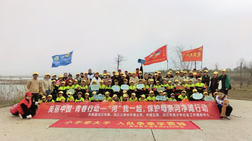 (图为 青年志愿者、红领巾志愿者开展净滩行动)
