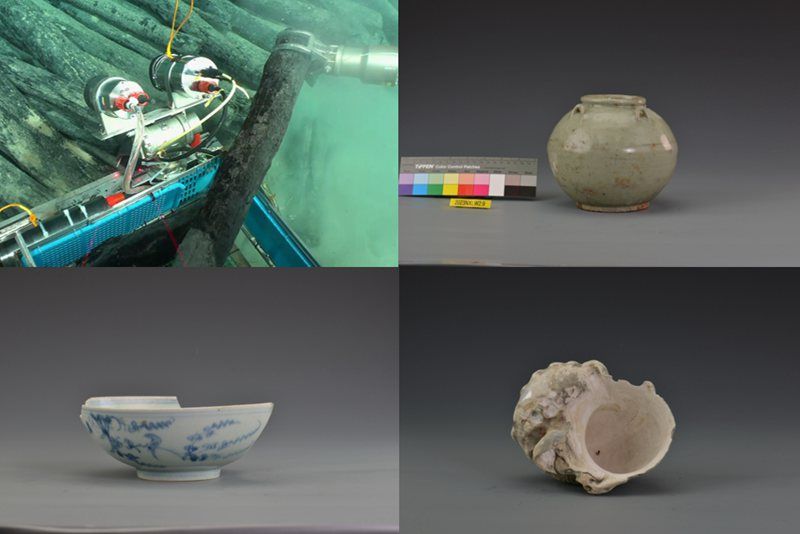 发掘出水文物标本约1.7万件,主要为龙泉青瓷和陶罐、铅锤、印章等船上生活、航海相关文物。其中龙泉青瓷数量达到1.6万余件,器形包括碗、盘、碟、盏、洗、缽、香炉和高足杯等,年代为元代晚期,为典型的外销贸易瓷。结合温州朔门古港的考古发现,推测该沉船可能是从温州港出海前往东南亚的民间贸易商船。