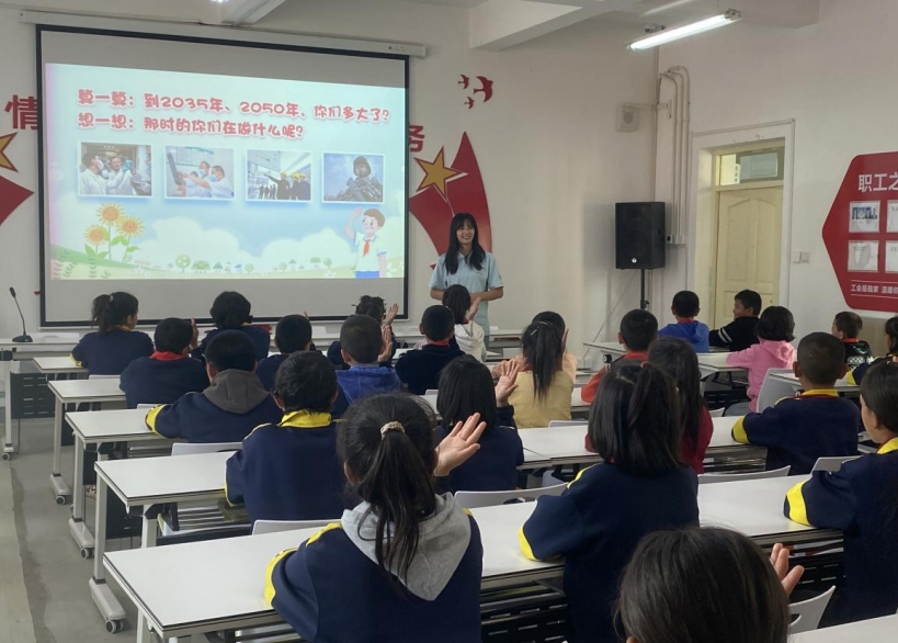 在当地团委的支持下,团队分别在红旗农场学校、喀什市第28中学开设了几门特色课程,涵盖了红色文化、素质拓展、海洋科普等多方面内容。实践团成员、新疆姑娘阿丽米热同学与孩子们分享了自己的成长故事,表示能够跟随团队一起回到家乡感到非常高兴。她说:“作为从新疆走出去的孩子,在接受了国家好政策的帮扶之后,理应回到家乡做些什么。”