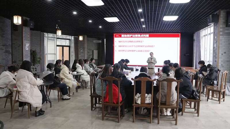 在闽江入海口取水采样、检测水样记录数据,探究河段水生态健康状况;针对沿途居民及游客开展问卷调查,了解水域保护状况;探秘生态定位站,近距离观察各鸟类种群及其栖息环境……当天,阳光学院法学专业30名学生在环境法专业教师和环保公益组织“福建省绿家园环境友好中心”工作人员的指导下,实地考察了闽江河口国际重要湿地,对沿海岸水质状况、生物栖息环境及群众环保意识等进行详细调研,并走进湿地博物馆,了解现有湿地保护规划及修复情况。之后,师生们还围绕湿地保护法律焦点问题开展小组讨论。