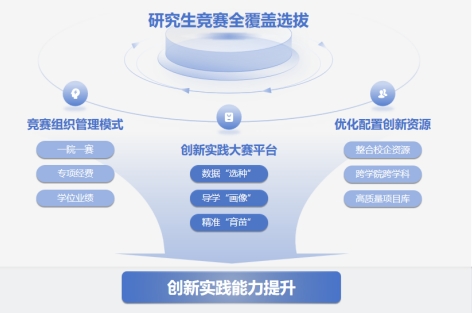 采取一院一赛的组织管理模式,由每个学院承办一项主题赛事,学校提供专项经费支持,统筹资源保障赛事。将竞赛获奖纳入专业学位研究生申请学位的基本业绩条件之一,以竞赛助力创新实践能力提升。