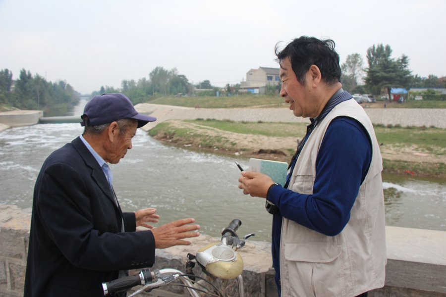 “事不目见耳闻,而臆断其有无,可乎?(苏轼语)”采风调查要下真功夫。以考察永济渠的渠首沁河口为例:古代,焦作地区是水资源比较富集的地区,境内的沁河是黄河下游的最大支流,也是永济渠的源头。沁河古称沁水,也称少水,隋朝时沁水分流为永济渠所利用的源头处,多数专家学者认为在今武陟县小原村。我们考察组决定到永济渠的渠首沁河口一探究竟,车到小原村,寻当地人一问三不知。经过多方打听,考察组终于沿沁河岸30多公里,在河南武陟县嘉应观乡境内的沁河左堤和黄河左堤交汇处才找到了沁河口的踪迹。在一条小道的旁边,一座高大的石碑立在路旁,上面写着沁河口的标志和介绍,道路下方便是当地的名寺——白马泉寺。