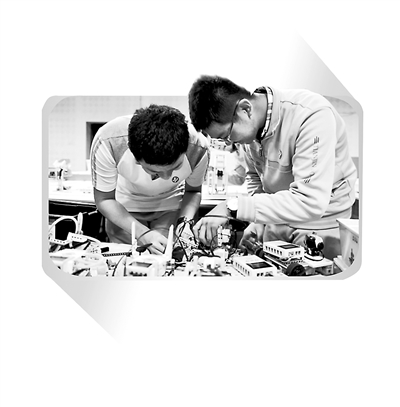 天津市第一中学学生进行“乘胜追机”机器人拼装与设计。学校供图