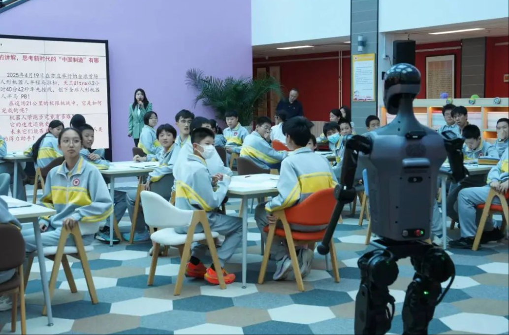 千龙网讯 “亦马奖牌中有哪些奥秘?赛事冠军天工机器人名字是怎么来的?”近日,以“亦马当先,智赢未来”为主题的“大思政课”教研活动在北京市第二中学经开区学校举办。该活动作为经开区积极构建“区校家”协同联动的思政育人“大格局”的一次生动实践,特邀北京亦庄半程马拉松暨人形机器人半程马拉松赛事冠军“天工Ultra”机器人团队走进校园。