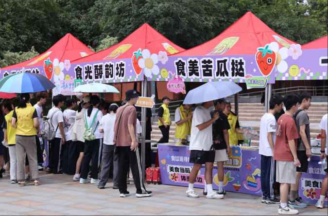 此次市集活动精准捕捉青年学生日常消费喜好,打造非遗文化体验、创意手作工坊、美食研究所等6大主题区34个特色摊位,吸引了众多校内青年创业学生、校外青年小店主理人和手工艺人等参与。手作工坊区展示校园文创、农学专业中药材制品等创新成果;美食区现制的荔枝醋、蛋挞等特色小吃吸引师生排队品尝;创业政策服务点提供的职业规划、孵化指导等“一站式”暖人心。“此次活动很有意义,既推广了校园文创,又锻炼了营销能力,收获远超预期!”校名商品展位的王同学兴奋表示。