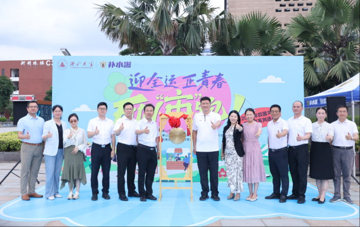 5月21日,由共青团佛山大学委员会和共青团佛山市南海区团委联合主办的“青春市集”在佛山大学有为广场热闹开市。中国青年创业就业基金会副秘书长梁范栋、学校党委副书记钟飞健、佛山团市委书记徐旭雁等领导出席活动,与全校数千名师生共同开启这场初夏的融运动、创意与文化的青春盛宴。