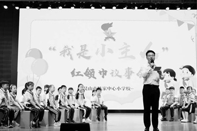 昆山市陆家中心小学校开展的“我是小主人”红领巾议事会活动(上图);该校协同南京师范大学心理学院及泗桥社区开展的亲子活动(下图)。徐薛炜摄