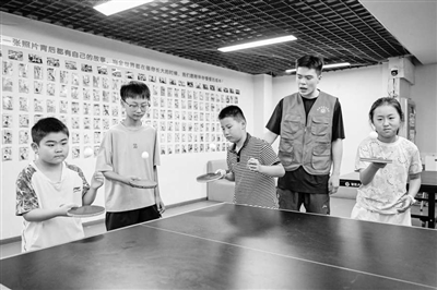 孩子们在学习打乒乓球。