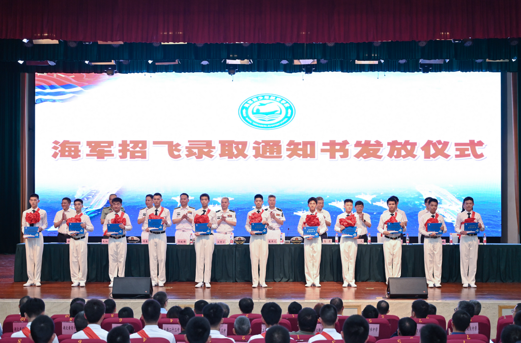 仪式上,学员身姿挺拔、胸佩红花,依次登台接过录取通知书。海航202202班学员陈绍骞作为代表发言,他表示,“这份通知书不仅是入学凭证,更是海疆战位的任命书!我们将以忠诚铸魂、以勇敢砺剑、以弘毅坚守、以奋进超越,用热血青春践行‘为战而生,向战而行’的誓言!”