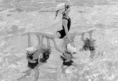 盐城市解放路实验学校暑托班学生在进行水中劈叉托举训练。学校供图
