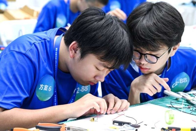 SFT科普创新大赛太空车选手现场制作。(主办方供图)