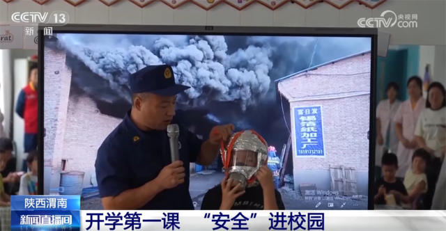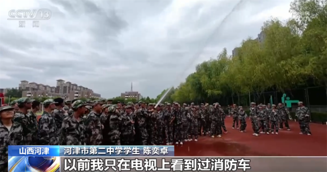 在山西省河津市第二中学,同学们的开学第一课是“移动消防课堂”。有奖问答、发放消防小配件等互动环节,以轻松有趣的方式传递安全知识。学生们还穿上了消防服,学习使用灭火器、铺设水带,进行实操体验。