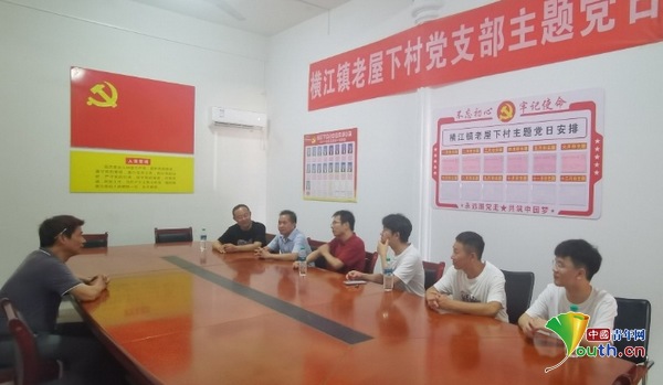 团队成员在老屋下村村政府向村医了解当地总体情况。团队供图