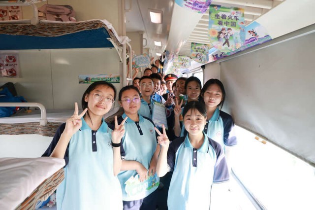 研学团将走进大连自然博物馆、圣亚海洋世界等场馆,锤炼自然科学素养与团队协作能力。为保障研学团顺畅出行,哈尔滨局集团公司客运部门协同海拉尔车务段,提供“专属运力+全流程服务”。海拉尔站设专属售票窗口、专用候车区等,全程提供安检、候车、检票及乘降引导服务。担当此次乘务任务的齐齐哈尔客运段打造了主题车厢。车窗上张贴“读万卷书,行万里路”励志标语,走廊两侧点缀铁路主题剪贴画。