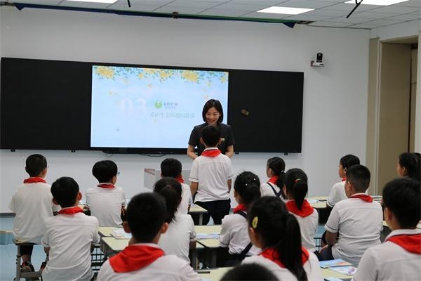 2023年9月,苏雅楠作为法治副校长,为临沂第三实验小学学生讲授开学第一课。受访者供图