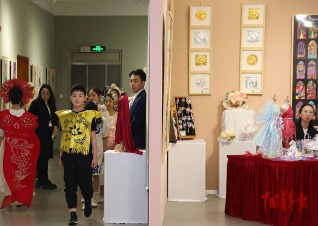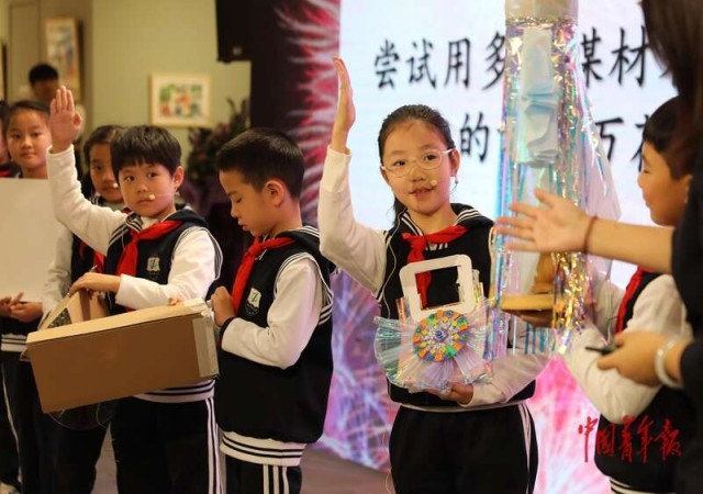 10月22日,北京炎黄艺术馆,朝阳区实验小学的同学们展示自己制作的手工艺品。中青报·中青网记者 陈剑/摄