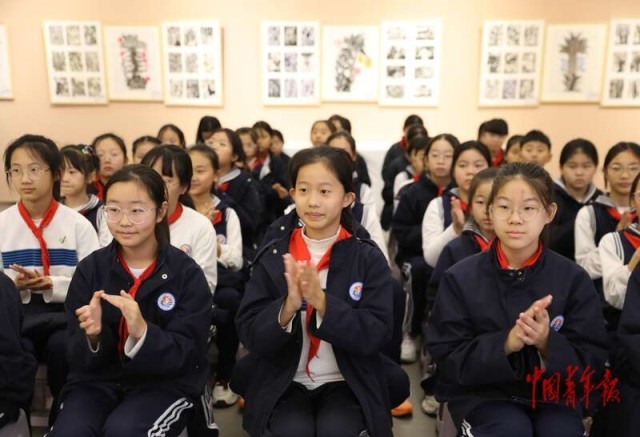10月22日,北京炎黄艺术馆,朝阳区实验小学雄安容西分校的同学们专程来到现场观摩。中青报·中青网记者 陈剑/摄