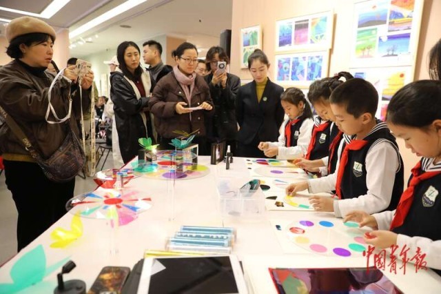 10月22日,北京炎黄艺术馆,朝阳区实验小学的同学在老师的指导下,利用反光材料设计制作服饰。中青报·中青网记者 陈剑/摄