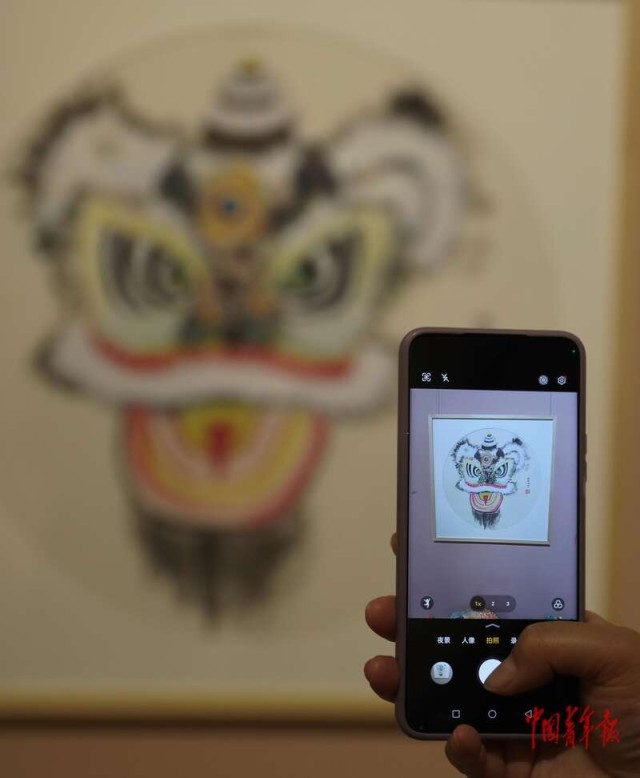 10月22日,北京炎黄艺术馆,一位观众用手机拍摄美育成果展上的学生作品。中青报·中青网记者 陈剑/摄