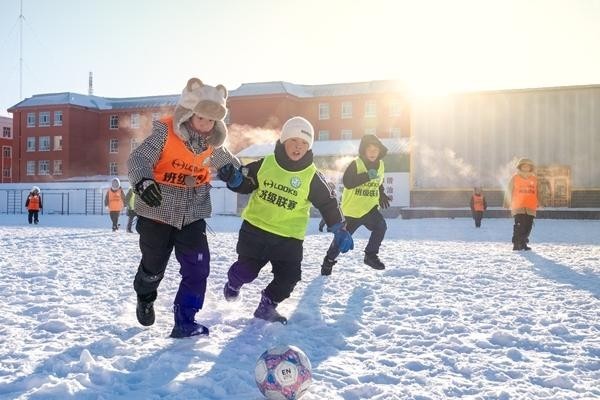 12月24日,额尔古纳第三小学的学生在雪地上展开足球对抗。吕昊俊/摄