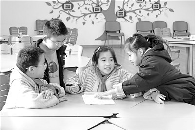 在苏州市吴江实验小学,小组长带着组员根据智能体评改意见修改作文。 学校供图
