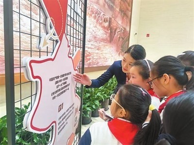 在初中生的课程中,学生每人手里都有一本学习手册,带着学习任务到“五四”主题浮雕前感受“觉醒回响——五四精神在艺术中的力量”,到“星火”展厅探寻百年前的历史现场……卢湾中学六年级学生朱孝嫣说:“这样的课堂形式很有创意,我觉得历史‘活’起来了。”
